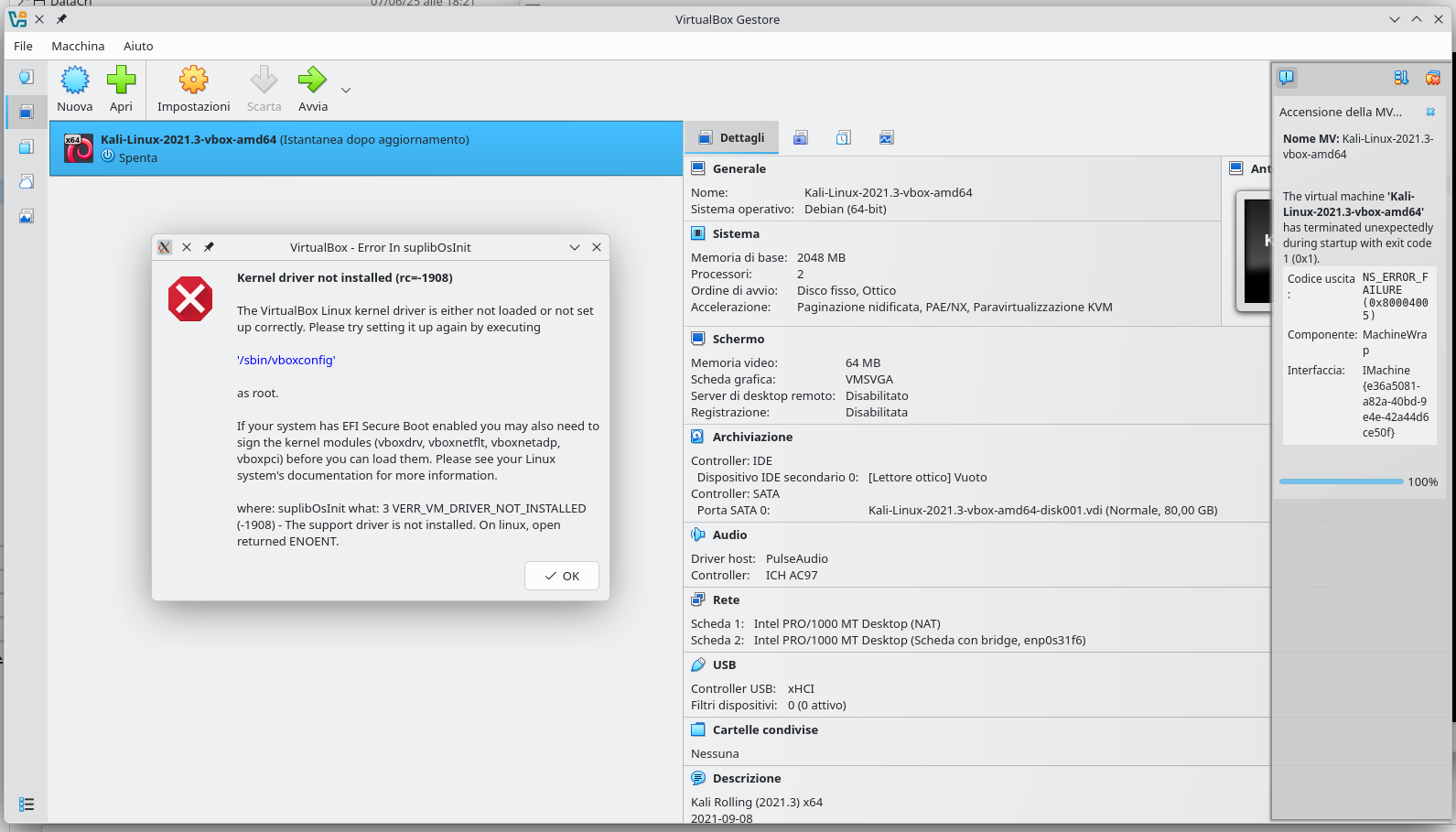 Dimenticavo… virtualbox non s’avvia. allego schermata,
