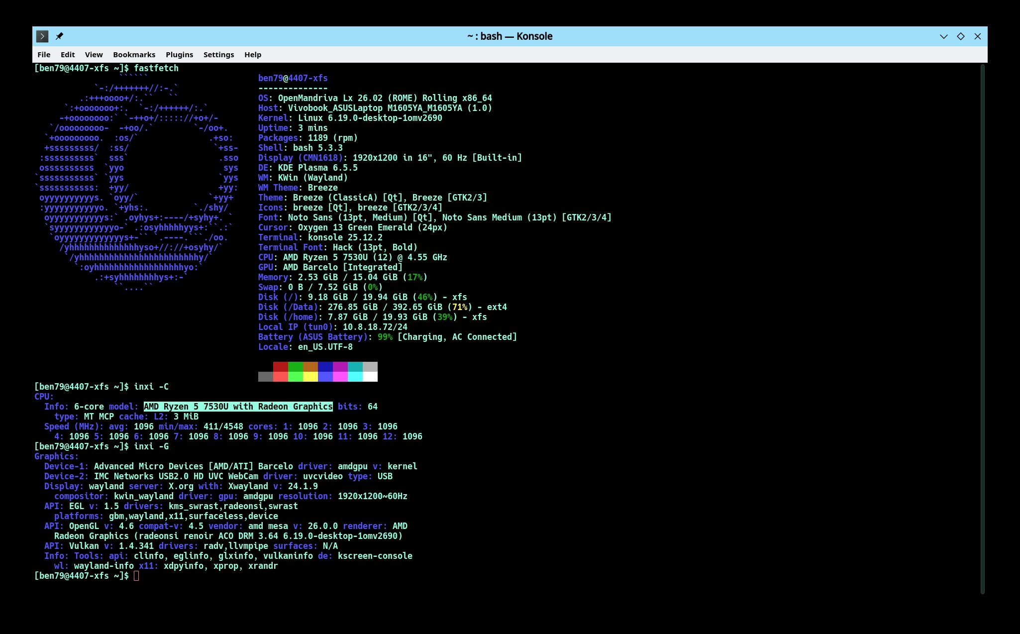 One problem is HDMI support. I am doing this on the ASUS K55A laptop. When I try to switch video output over to HDMI, everything goes black on my monitor and the laptop. Disconnect the monitor and the laptop display comes back. The HDMI port does work. I had it working with Plasma 6 yesterday and earlier today. The monitor works when I go into UEFI settings after hitting the F2 key at power on.