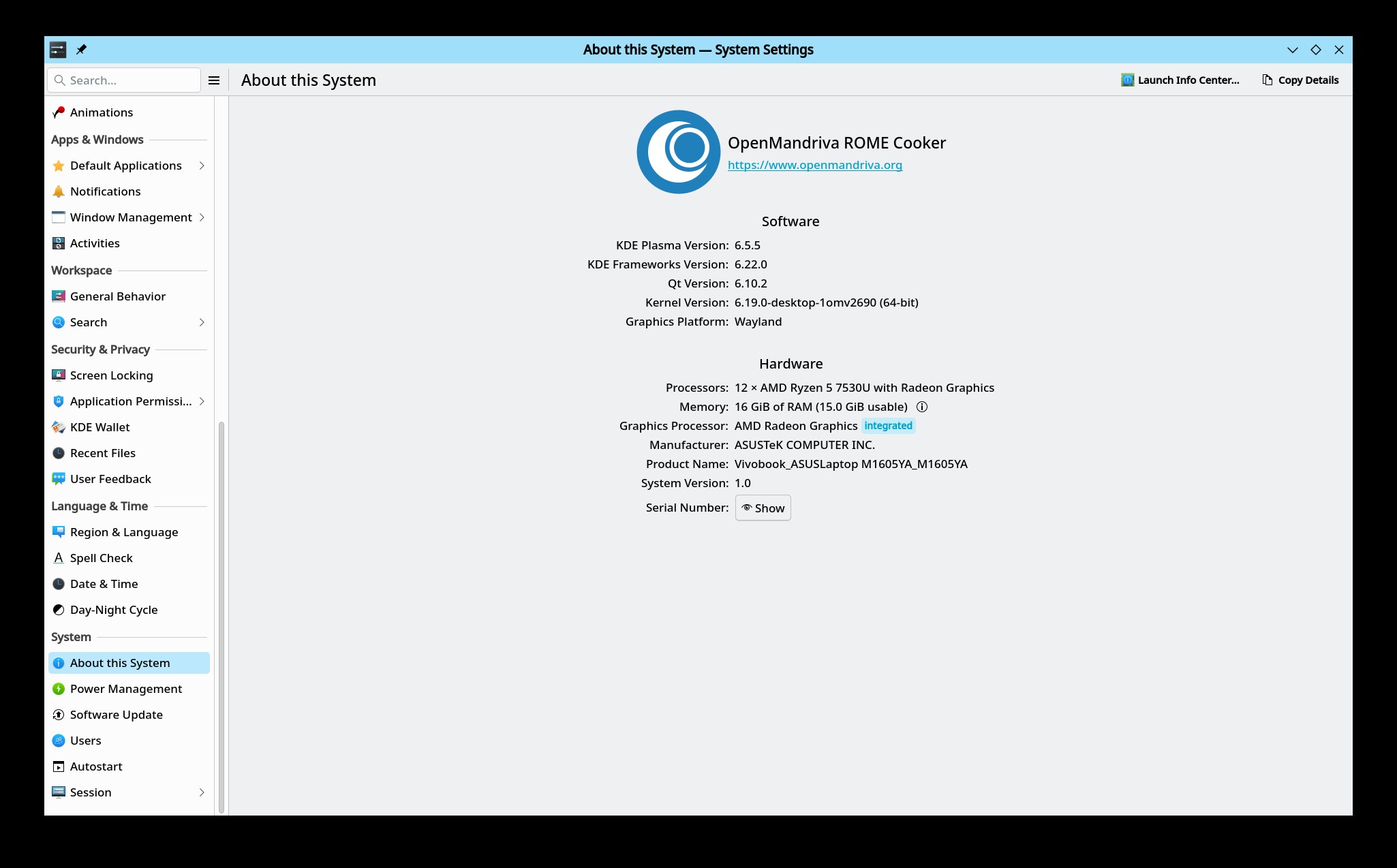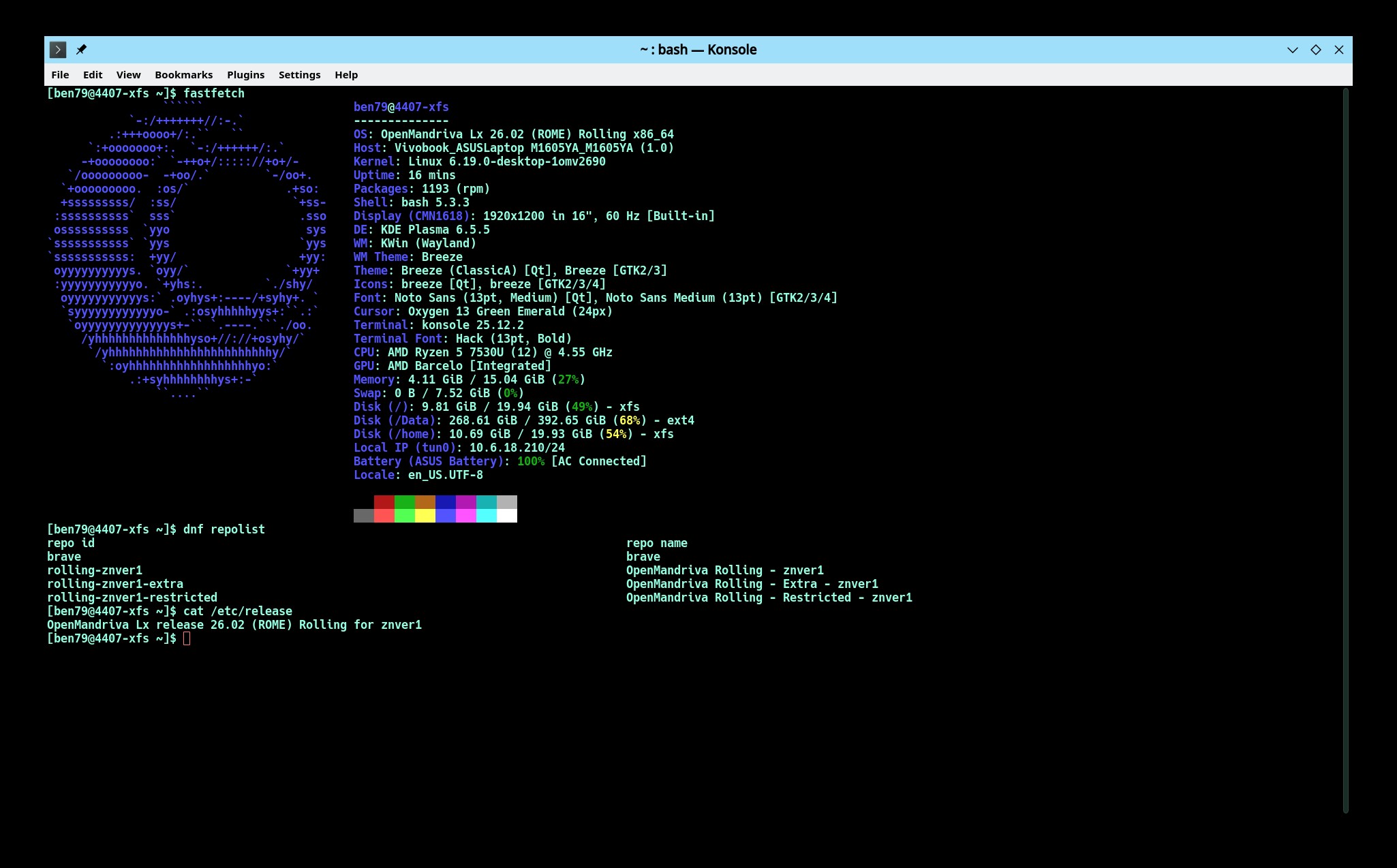 With OpenMandrivaLx.rolling-snapshot.20260213.4403-plasma6x11.x86_64.iso, Welcome center don’t work. The application window opens in a splash screen and then closes immediately. The system is Cooker not Rolling. Firefox, Helium, Thunderbird and Libreoffice are working.