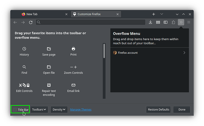 Sadly didn’t worked. The thing I posted above is not a full solution too. It does not apply to other apps, components of firefox and takes too much space on the screen.