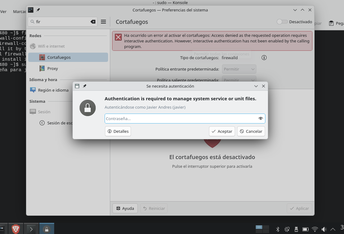 my apologies, but i will also append what journalctl registered after i tried something i found on internet for enabling firewalld from terminal: sudo systemctl enable --now firewalld