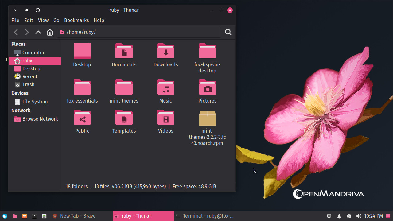 I downloaded themes from Mint, the Fira fonts from my own repository on github, and changed some ui settings. I also am gonna setup a bspwm version later, if I can get to compile maim. I might put a package request up for that. (I can screenshot using that and xclip)