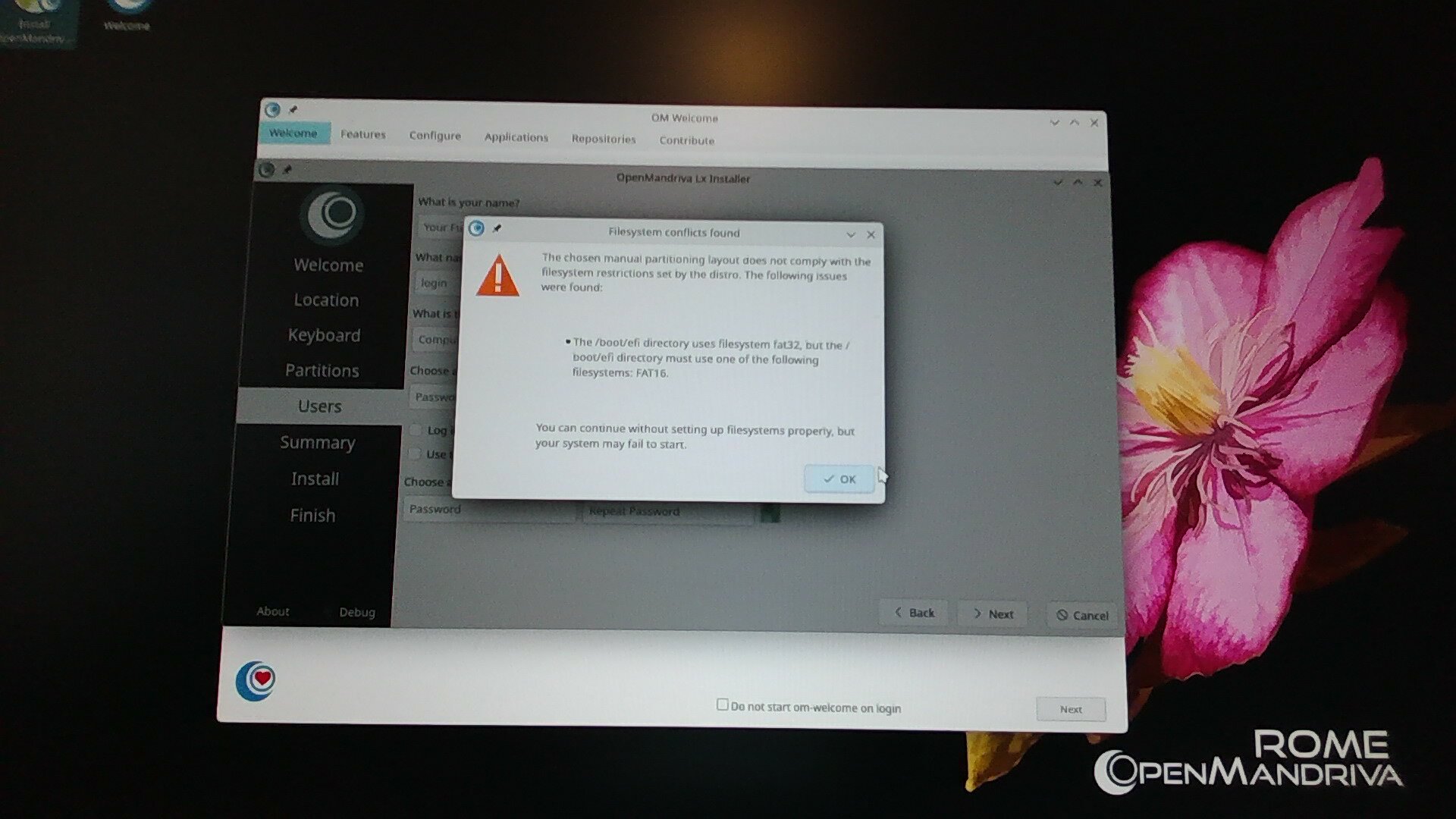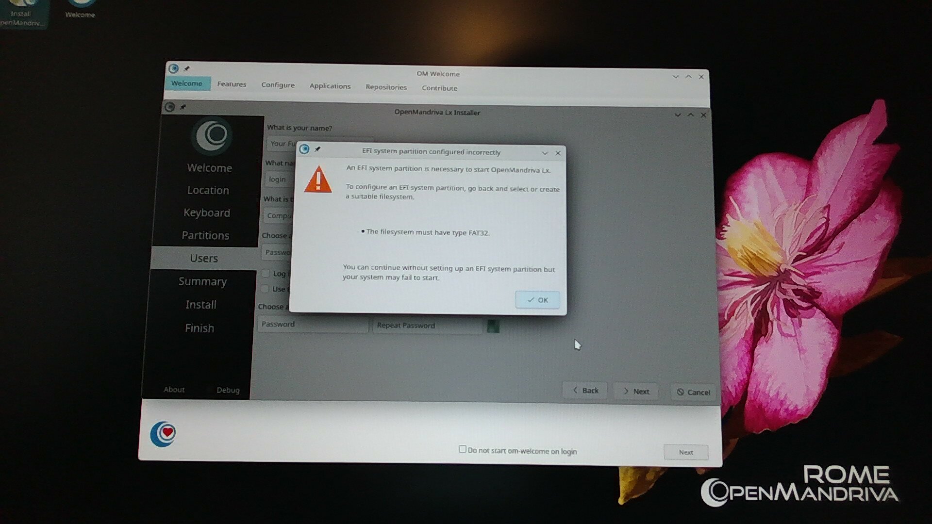The “Install Open Mandriva” desktop shortcut is still present. When run, it pops up a warning, “no installation media present” (or words to that effect, I almost forgot about this) EDIT: I just checked this again, it asks for password first, then says “There are no partitions to install on”