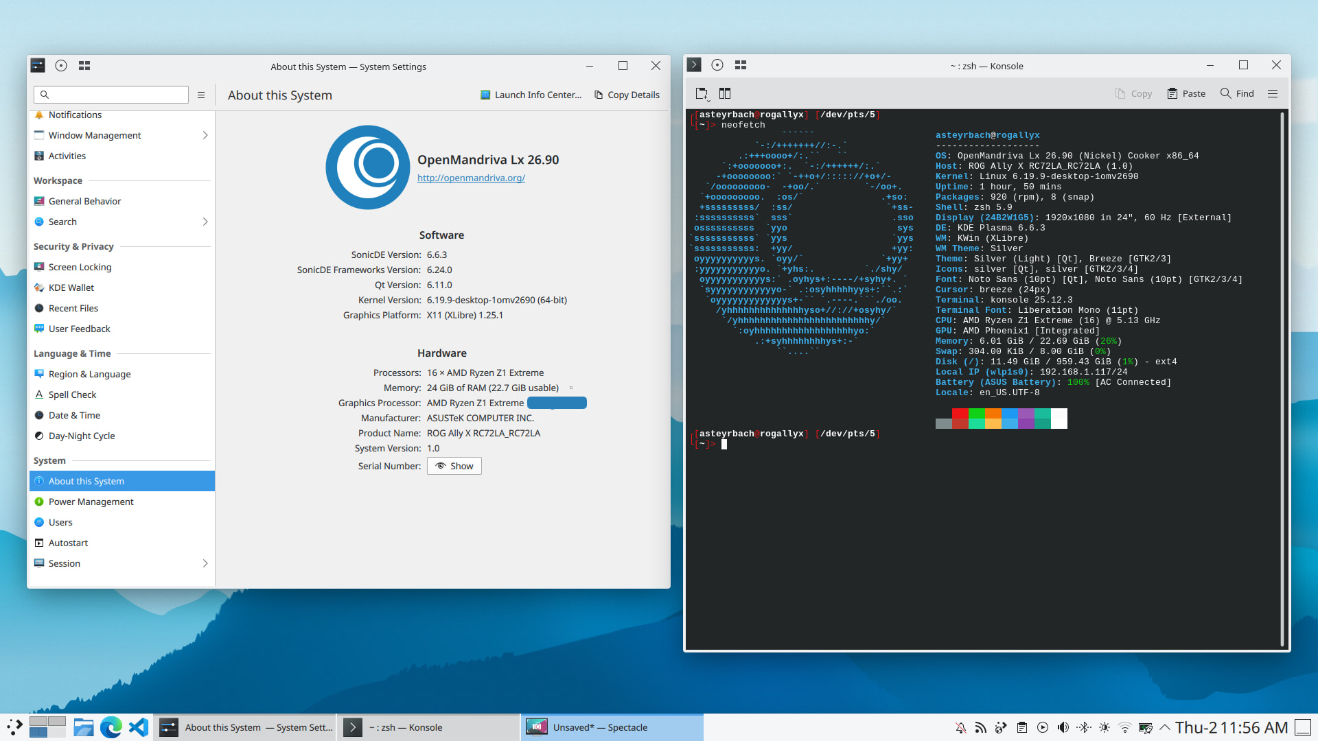 Other than that - ROG ALLY X is my main work machine, although I mostly use VS Code and MS Edge and more or less OS agnostic - OpenMandriva with xLibre was stable enough for the week I actively used it. I hope SonicDE team will release fixes for missing packages soon as well.