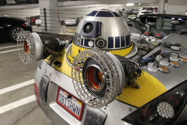 That’s his daily driver. He’s been stopped by the cops a few times, but only because they wanted a closer look. Lot fancier than the first car he modded (which had more the beat-up Star Wars vibe, and more noticeable side guns).