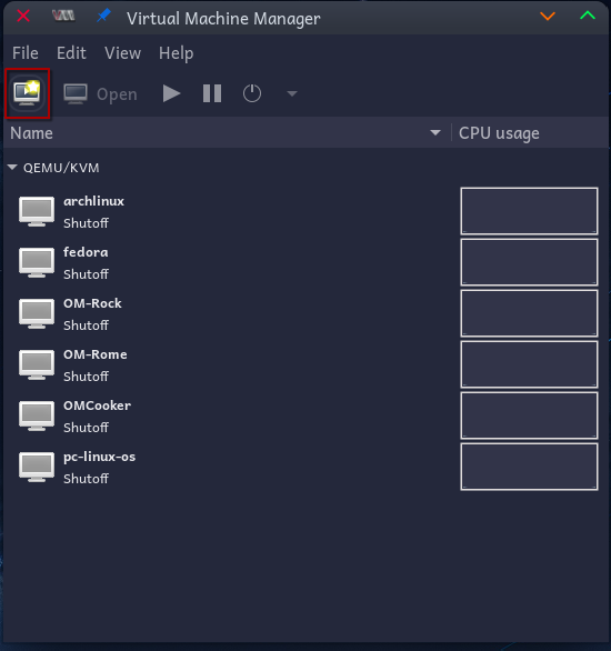 Click the left-most button in the toolbar to create a virtual machine.