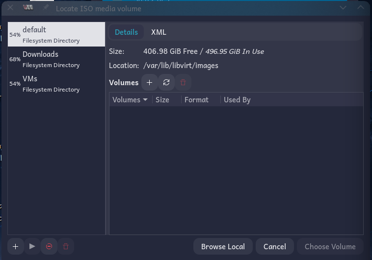 You’ve now set up VirtManager to point to where you’ll store all future virtual machines and ISO installers. You won’t have to do these steps again.